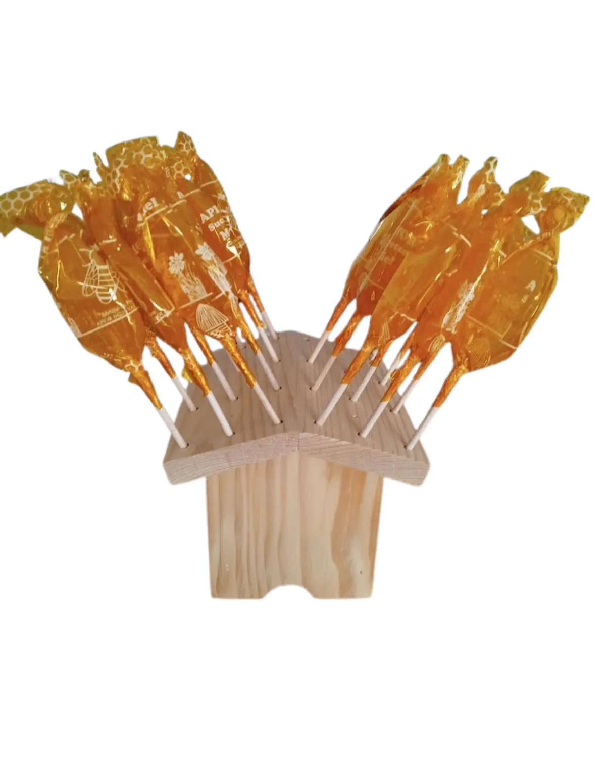 Présentoir à sucettes mini ruche en bois.